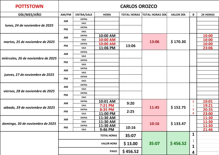 PAYROLL POTTSTOWN AMOS VICENTE ASTRID SACACH CARLOS OROZCO DERWIN PEREZ FERNANDO CRUZ JOSUE VASQUEZ LEONEL ALARCON MYNOR GARCIA VICTOR GARCIA ZANDRA MUNZON ZENAIDA PEREZ RESUMEN