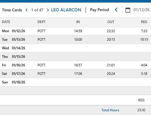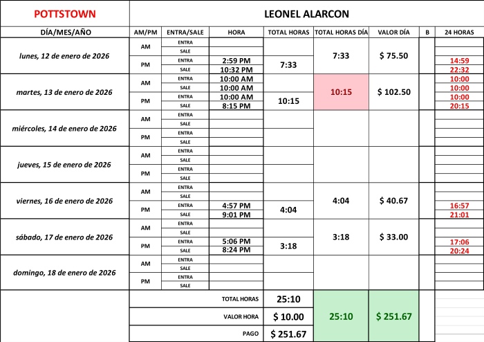PAYROLL POTTSTOWN ADRIANA FOLGAR AMOS VICENTE ASTRID SACACH CARLOS OROZCO EMANUEL US FERNANDO CRUZ JOSUE VASQUEZ LEONEL ALARCON VICTOR GARCIA ZANDRA MUNZON ZENAIDA PEREZ RESUMEN